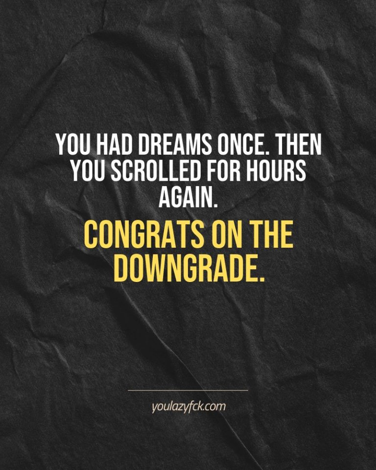 YouLazyFck is not another “feel-good” productivity blog. It’s a dark humor space where we strip away the motivational fluff and hand you a daily dose of reality. Call it a slap in the face, call it brutal honesty — we call it the only thing that actually works.