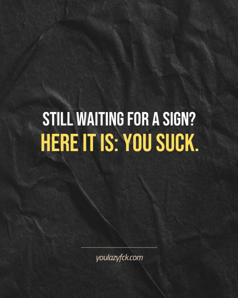 Here you’ll find a mix of our best and worst insults, all designed to poke holes in your excuses and kick you out of your comfort zone. It’s like flipping through a deck of cards, except every card calls you out for being lazy.